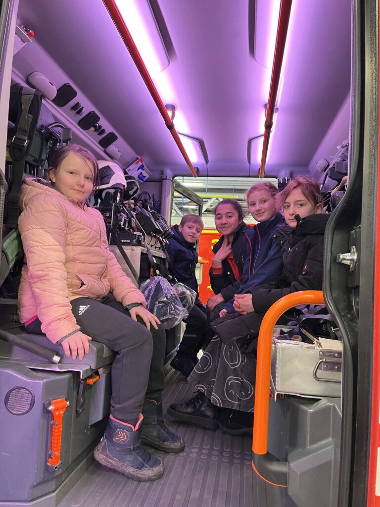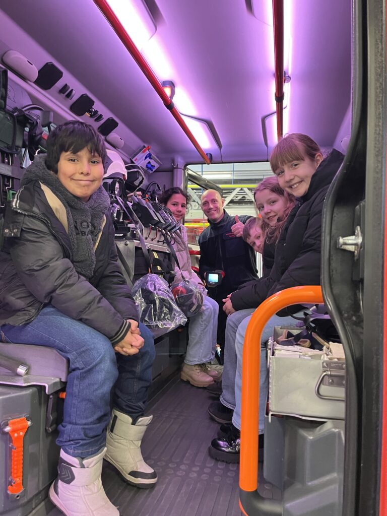 Im Januar 2026 besuchten die vierten Klassen unserer Schule die Feuerwache 3 in Rostock Dierkow/Toitenwinkel. Neben einem spannenden Quiz zum Brandschutz erhielten wir einen tollen Rundgang durch die Räumlichkeiten sowie einen Einblick in den Arbeitsalltag eines Feuerwehrmannes, erlebten die Nutzung der Rutschstangen durch ausrückende Rettungssanitäter und durften sogar in einem Feuerwehrauto Platz nehmen. Für diese tollen Eindrücke bedanken wir uns herzlich bei der Berufsfeuerwehr der Hansestadt Rostock. Die dritten Klassen freuen sich schon auf den Besuch im nächsten Jahr.